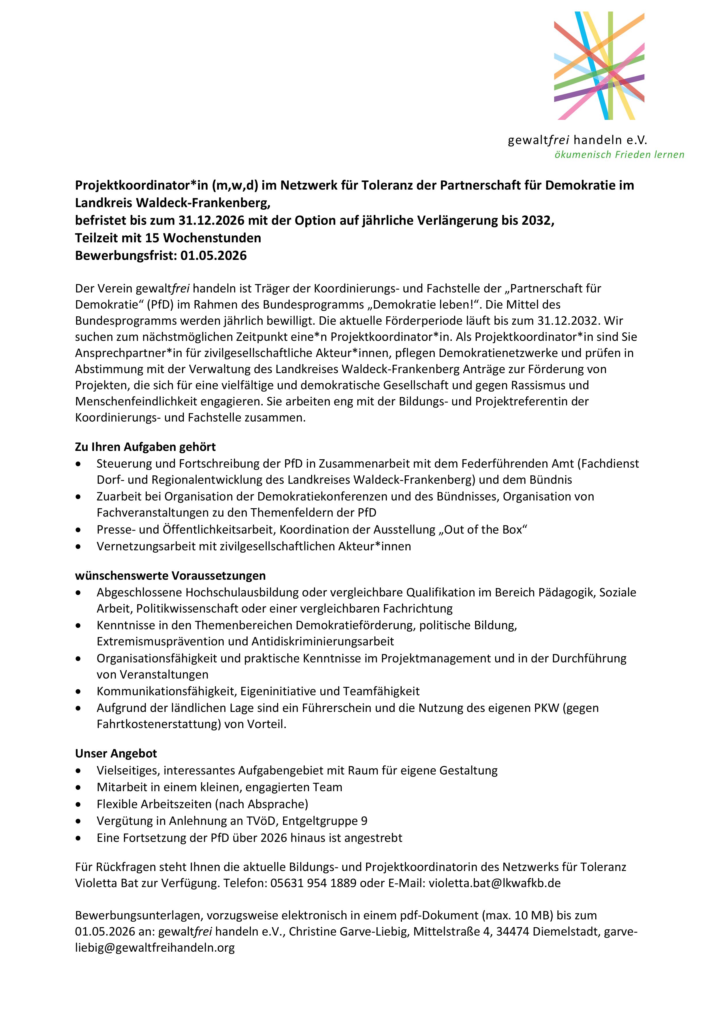 Stellenausschreibung beim Netzwerk für Toleranz
